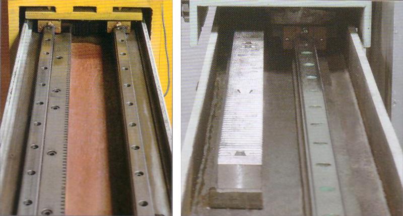 該機(jī)采用PLC可編程控制系統(tǒng)和人機(jī)操作界面,輔以超高精度磁柵定位尺,及紅外線激光標(biāo)線儀,上下升降采用雙液壓升降,結(jié)合鍍鉻導(dǎo)柱+耐磨導(dǎo)套,配合間隙小,升降速度快。