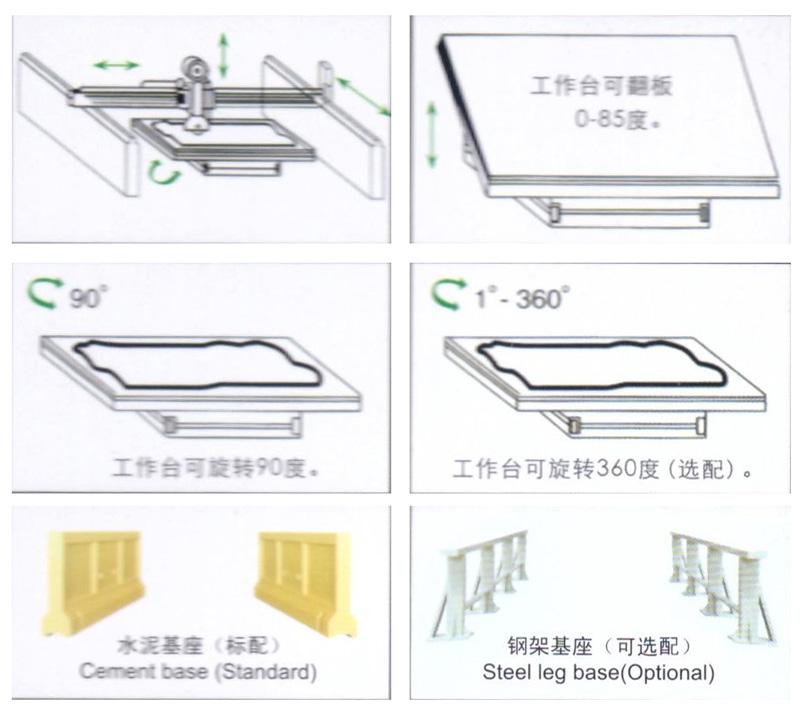 該機(jī)左右橫梁及前后行走邊梁均采用精密線性導(dǎo)軌,配以伺服馬達(dá)驅(qū)動(dòng)控制,可根據(jù)石材材質(zhì)進(jìn)行調(diào)速定位,使機(jī)器精準(zhǔn)的更高,速度更快,特別適用于高價(jià)值大規(guī)格花崗巖、大理石板材的切割。